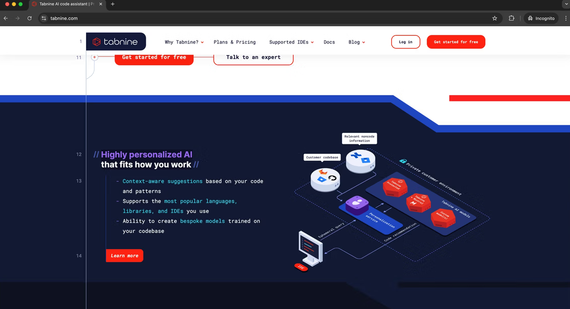 Tabnine یک ابزار هوش مصنوعی برای پیشنهاد خودکار کد (AI-Powered Code Completion) است که در محیطهای توسعهای (IDE) مانند VS Code، IntelliJ، و PyCharm یکپارچه میشود. هدف اصلی آن، کمک به توسعهدهندگان برای نوشتن کد سریعتر و بدون خطا با استفاده از مدلهای زبانی پیشرفته (مانند Tabnine Base و Tabnine Pro) است.